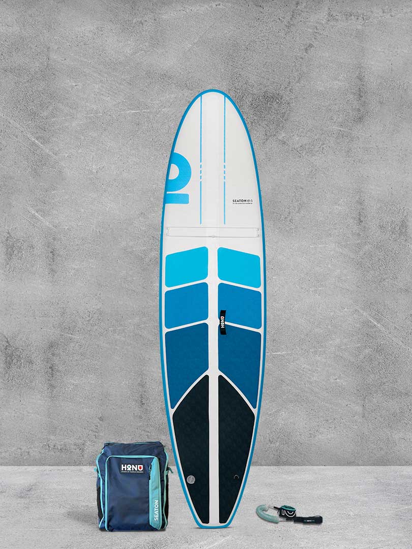 Introducing the Seaton - a versatile and compact SUP that combines the renowned performance of the Byron with a smaller design. Measuring only 10'8" x 32.5", it can accommodate almost anyone, and its backpack is 40% smaller than a full-size bag, making it easy to transport and store. Whether you have limited storage space or are planning an exciting road trip, the Seaton is perfect for your needs.